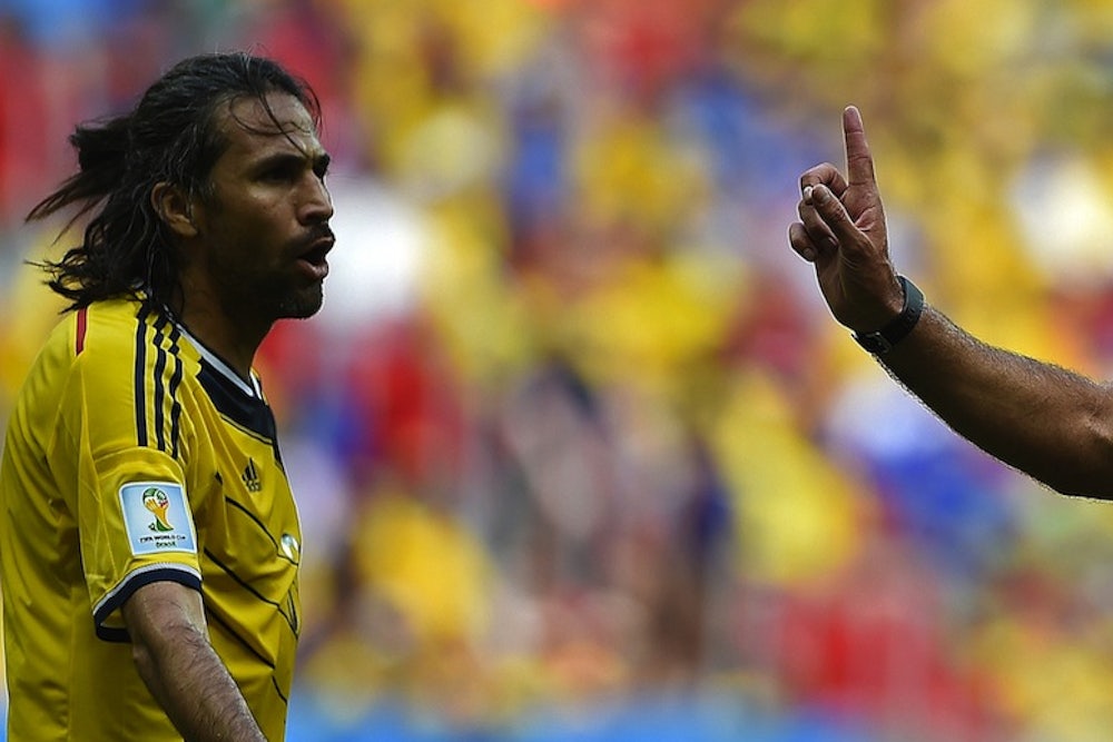 No referee in this World Cup has had such a hard time as Marco Rodríguez, the Mexican who was in charge of Italy v. Uruguay in Natal on Tuesday. At the time and since he has endured endless abuse from the Italians. I thought he had a perfectly good game. The foul on José María Giménez for which Claudio Marchisio was sent off may have been on the borderline between yellow card and red. But referees have continually been instructed to punish players who go in studs-first at ankle height or above, and Marchisio’s studs hit Giménez a few inches below the knee.
