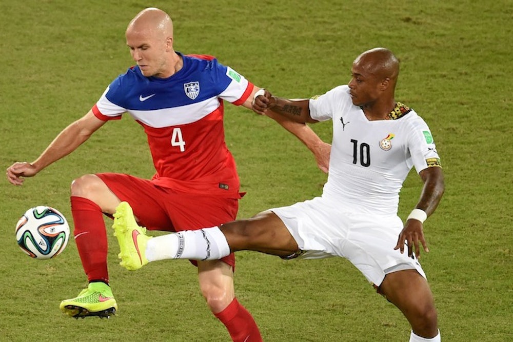 But this ideal never came to fruition in the Group of Death as the United States often struggled to maintain possession, especially against Ghana and Germany. Watch the Germany game again, with the U.S. entering bunker mode early, and you’ll see Bradley trying in vain to concurrently hold attacking and defensive roles. He’s the first player to press Germany’s centerbacks, sometimes even ahead of forward Clint Dempsey, before dropping back to mark an advancing central midfielder. In the language of American football, Bradley is playing both ways.