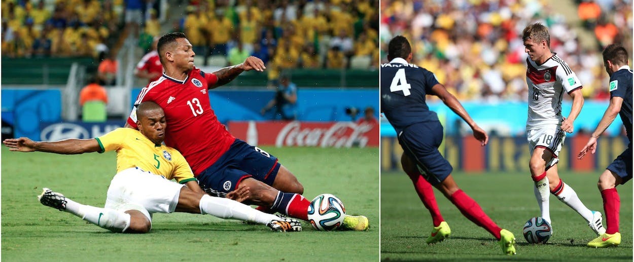 These are the two of the most pedigreed sides in the world, with 18 semi-final appearances and eight trophies between them. Making this matchup all the more intriguing is that neither side fits the traditional stereotype of its national team. The Brazilians have muscled their way through, with only a few flourishes of jogo bonito. The Germans, meanwhile, are no longer the ruthless machine of past generations and seek to play a more aesthetically pleasing game. Whoever wins tomorrow will make history. Will Brazil do it by remaining undefeated for a 63rd straight competitive home game, or will Germany go one step closer to becoming the first European team to win in South America?