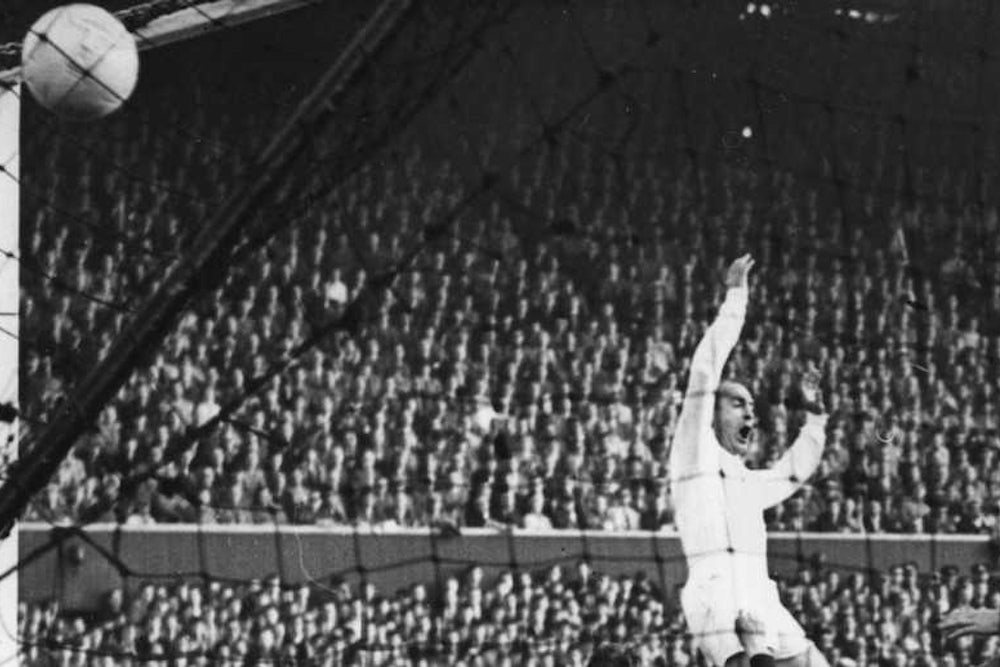 Alfredo Di Stefano never played a game in the World Cup—his Argentina was ruled out of the Cup for infractions; and when he could have played for Spain, he was injured or they failed to qualify. It doesn’t matter. Blond, losing his hair, not athletic-looking, but endlessly fast, effortlessly balanced, and as greedy for goal as Arjen Robben, he was the essential figure in the dawning of international club soccer. Di Stefano led Real Madrid in the era when they won the European Cup (now the Champions League) five times in a row, from 1955 to 1960.