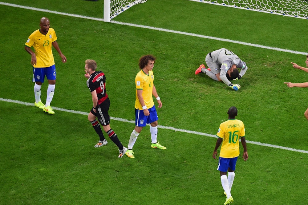 Scolari’s art has always been so obvious that when, prior to the ’02 World Cup, it was coined “bullyball,” what else could you do but nod your head in agreement? Bullyball. Such a simple, proud, and ridiculous idea. Close spaces. Intimidate. Kick. In Japan and South Korea, Scolari only played with three recognized defenders. But he also had Ronaldo, Rivaldo, Ronaldinho, Roberto Carlos, and Cafú on that team. You need to have the capacity to intimidate with the ball. Brazil, with Neymar out was always going to prove incapable of that. So Scolari opted to go all in on intimating without the ball. Enter Dante for Thiago Silva and re-enter Luiz Gustavo after his suspension. And just like that, any mental edge Brazil hoped to have in a game against Germany was gone.