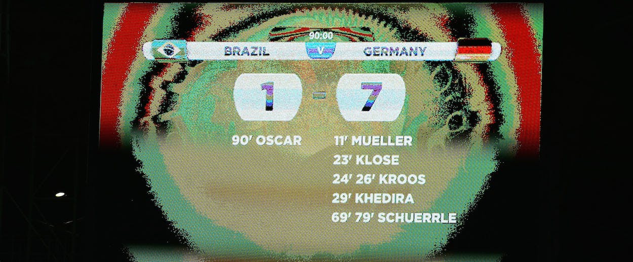 With three matches to go (including the third-place game), we’re only five goals away from topping the current highest tally: 171 from France 1998. (The tournament expanded that year to include 32 teams rather than 24.) While Brazil 2014 got off to a record-breaking start, averaging an incredible 3.06 goals per game in the first 16 matches, the goals seemed to dry up in the knockout stages, with all of those extra times and penalty shootouts. Suspense replaced spectacle as the driving force of the tournament. Germany vs. Brazil changed all that, and the four teams left in the tournament are more than capable of knocking in enough goals by the end of this week to secure the record.
