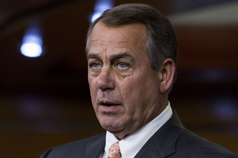 Three and half months later, House Republicans are set to use that exact budget gimmick as a spending offset to an infrastructure bill—and Boehner’s not complaining this time around.