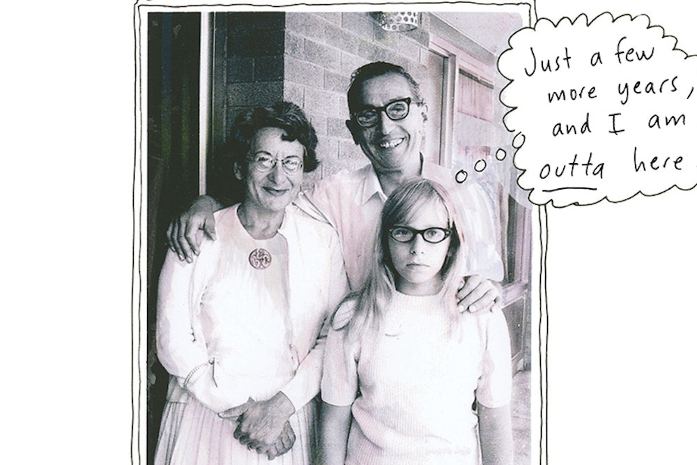 With both Maus and Fun Home as inspirations, countless artists and writers have no doubt thought of doing graphic memoirs of their relationships with their parents. Two years ago, Bechdel herself published a book as a follow-up to Fun Home called Are You My Mother?, a cerebral but turgid and indulgent book about her tortured relationship with her still-living mother. Over the past several years, I have thought fairly seriously about writing a book about my own parents’ miserable descent into decrepitude, senescence, and the interminably protracted shutting-down—the long dying—that death is for most aged, ill people who are not run over by trucks. My mother died three years ago, and on the day of her death my father made his way to the roof of their building to jump and join her. A police team talked him down. Then things got harder and darker and weirder for him and for me. I thought that the cartoon format would help offset the grimness of the events, while also serving the black comedy of my father’s final years in a Dickensian county nursing home.