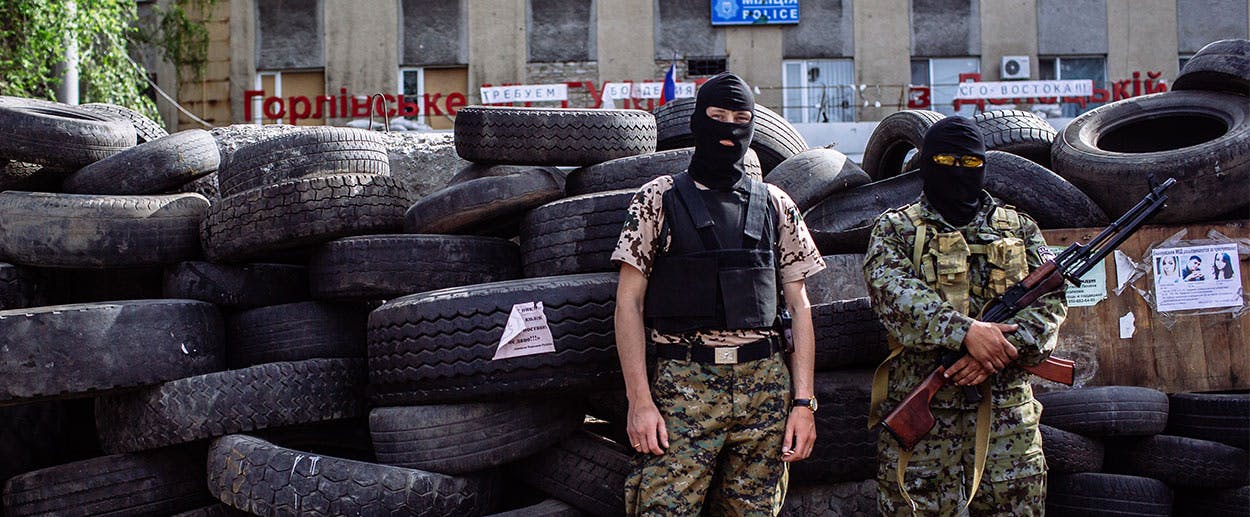 I took my friend Max Avdeev, a Russian photographer, out to the rebel-held areas of eastern Ukraine. As we drove into the rebel stronghold of Gorlovka, a small town in the Donetsk region, we were stopped at a checkpoint by a bunch of middle-aged men in tank tops and Kalashnikovs who asked to see our IDs. We showed them our passports and press accreditation from the Donetsk People's Republic and they suggested that, if we want to take pictures and interview people in Gorlovka, we check in with the town boss, who was holed up in the seized police station.
