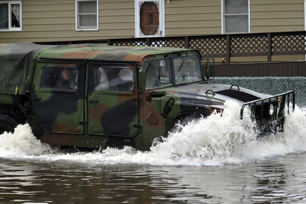 At a Senate Foreign Relations Committee hearing, a Department of Defense representative laid out how climate change is exposing its infrastructure in coastal and Arctic regions to rising sea levels and extreme weather, and that it's even impacting decisions like which types of weapons the Pentagon buys. This is only the latest in a series of recent warnings from the military, which raised the issue as far back as George W. Bush’s second term. In March, the Pentagon warned, in its Quadrennial Defense Review, that the effects of climate change “are threat multipliers that will aggravate stressors abroad such as poverty, environmental degradation, political instability, and social tensions—conditions that can enable terrorist activity and other forms of violence.” In other words, increased drought and water shortages are likely to trigger fighting over limited resources. The military has pledged to cut its greenhouse gas footprint 34 percent by 2020—and it’s already well on its way to that goal.