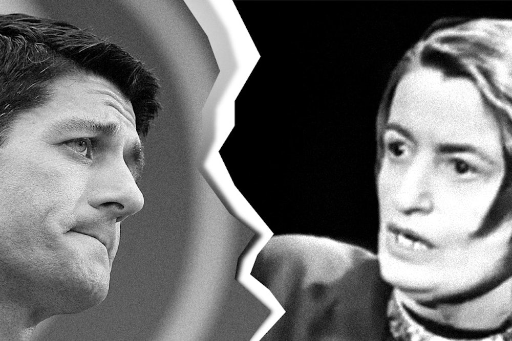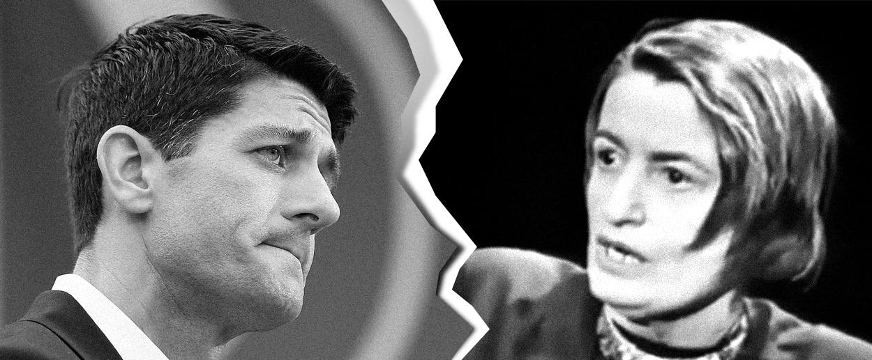 But he also now proposes spending more taxpayer money on poor people (definitely not Randian) by expanding the earned income tax credit. Ryan would pay for this expansion by cutting other anti-poverty programs (Randian). But also by cutting mostly-unspecified corporate subsidies. He alludes to agriculture subsidies and clean-energy subsidies, but his rhetoric—"Energy companies also receive a number of subsidies"—is consistent with eliminating tax breaks for polluters (kind of Randian, kind of not Randian). This isn't a tremendous departure for Ryan. His overall vision is still pretty radical. But inflexibility is a defining quality of Randism. There is no "mostly Randian." As much as Ryan might prefer a narrative in which he didn't leave objectivism but that objectivism left him, it doesn't really work that way. And from the perspective of his critics, no longer being Randian isn't a great boast, but it's progress of a sort.