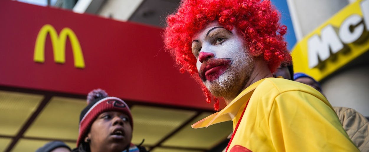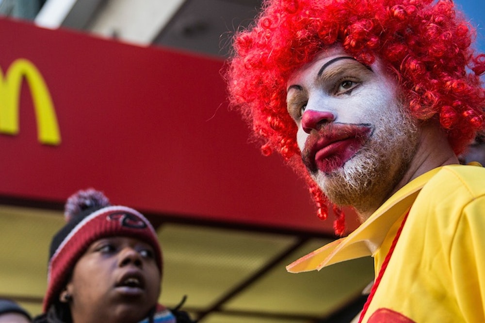 Despite the growing pressure, though, fast-food chains like McDonald’s have been able to hide behind the veil of the franchise model, disavowing responsibility for what happened inside restaurants. Worker advocates have long argued that this was a charade, given the strict terms that the company dictates to its franchisees (whose plight Tim Noah described not so long ago in Pacific Standard). “There’s no doubt who’s in control,” said Micah Wissinger, the Levy Ratner partner who is arguing the unfair labor practice complaints before the NLRB. As Richard Eiker, a veteran McDonald’s worker from Kansas City, described to reporters on a conference call Tuesday, the company sends representatives to his store a half-dozen times a year to check on the business, in addition to sending “secret shoppers” for undercover visits, and the restaurant’s operations are closely tracked on a corporate computer system. “The only thing the franchisees can skimp on is wages,” said Eiker, who now makes $11.05 per hour taking out the trash and cleaning bathrooms—after 25 years as a McDonald’s employee.
