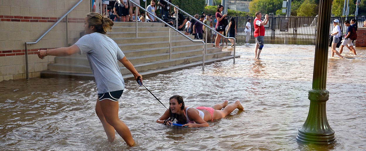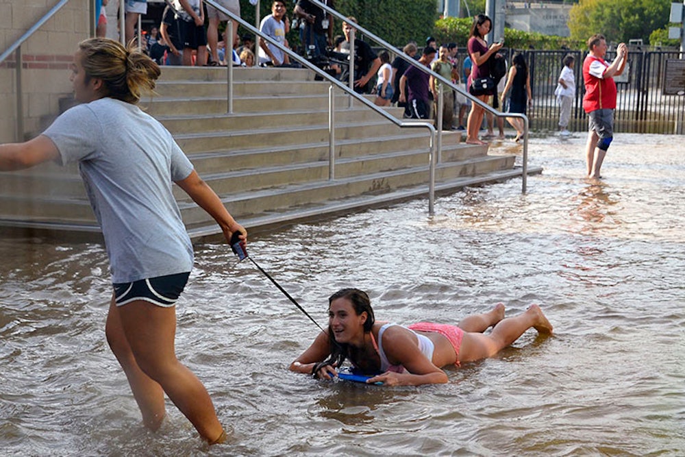 A 90-year-old water main in Los Angeles burst Tuesday, dumping between 8 and 10 million gallons onto the UCLA campus in less than four hours. The pipe happened to flood the campus the same day that California began imposing a criminal charge and $500 fine for excess water usage. The fine is part of state officials’ efforts to combat California’s three-year-long drought—80 percent of the state is suffering from "extreme drought"—by having residents cut down on their water use for activities like hosing down driveways or washing cars.