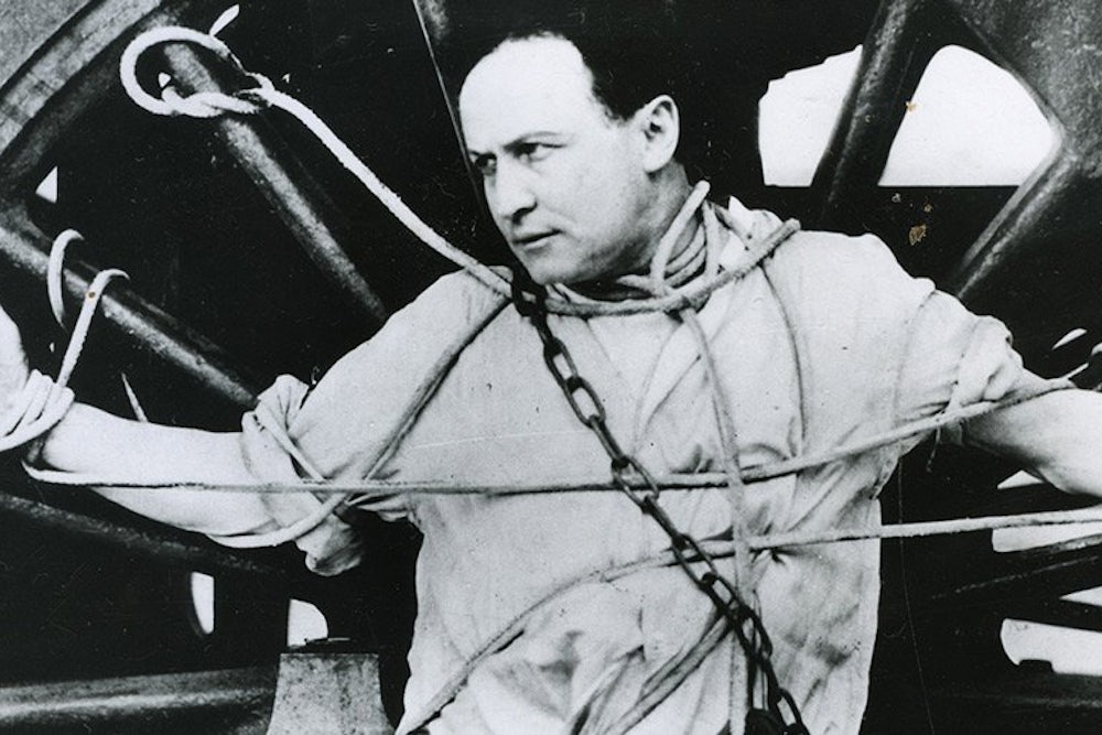 Houdini is a short strong stocky man with small feet and a very large head. Seen from the stage, his figure, with its short legs and its pugilist’s proportions, is less impressive than at close range, where the real dignity and force of his enormous head appear. Wide-browed and aquiline-nosed, with a cleanness and fitness almost military, he suggests one of those enlarged and idealized busts of Roman generals or consuls. So it is rather the man himself than the showman, the personality of the stage, who is interesting. Houdini is remarkable among magicians in having so little of the smart-aleck about him: he is a tremendous egoist, like many other very able persons, but he is not a cabotin. When he performs tricks, it is with the directness and simplicity of an expert giving a demonstration and he talks to his audience, not in his character of conjuror, but quite straightforwardly and without patter. His professional formulas—such as the “Will wonders never cease!” with which he signalizes the end of a trick—have a quaint conventional sound as if they had been deliberately acquired as a concession to the theatre. For preeminently Houdini is the honest earnest craftsman which his German accent and his plain speech suggest—enthusiastic, serious-minded, thoroughgoing and intelligent.