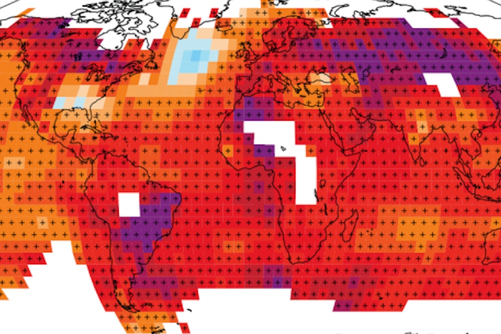 Indeed, scientists expect the rate of warming to slow for extended intervals. That’s because of the internal complexities of the climate system, where factors like solar radiation, volcanoes, El Nino, water vapor, and winds all play a role. Meanwhile, even as temperature on land is zigging and zagging, it has kept rising in the seas. Ninety-three percent of the Earth’s heat is absorbed in the ocean. And there the warming trend has actually accelerated.