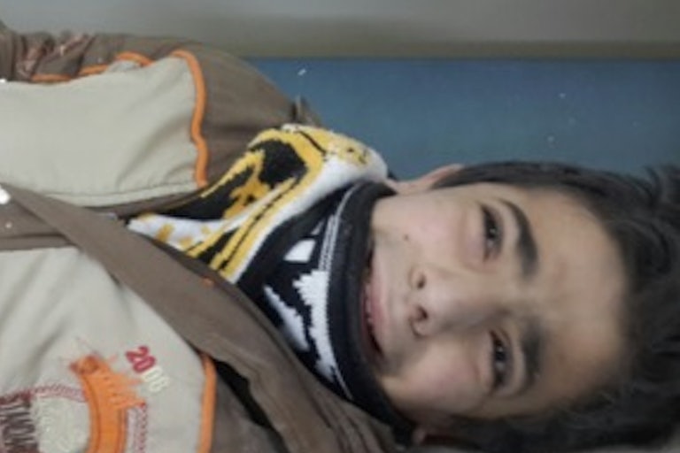 Zaher SahloulAbdallah, 12 year old, victim of a barrel bomb, saved by surgery in M-10 hospital.
