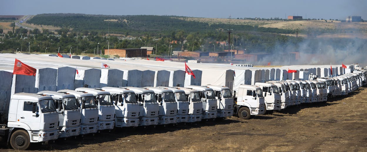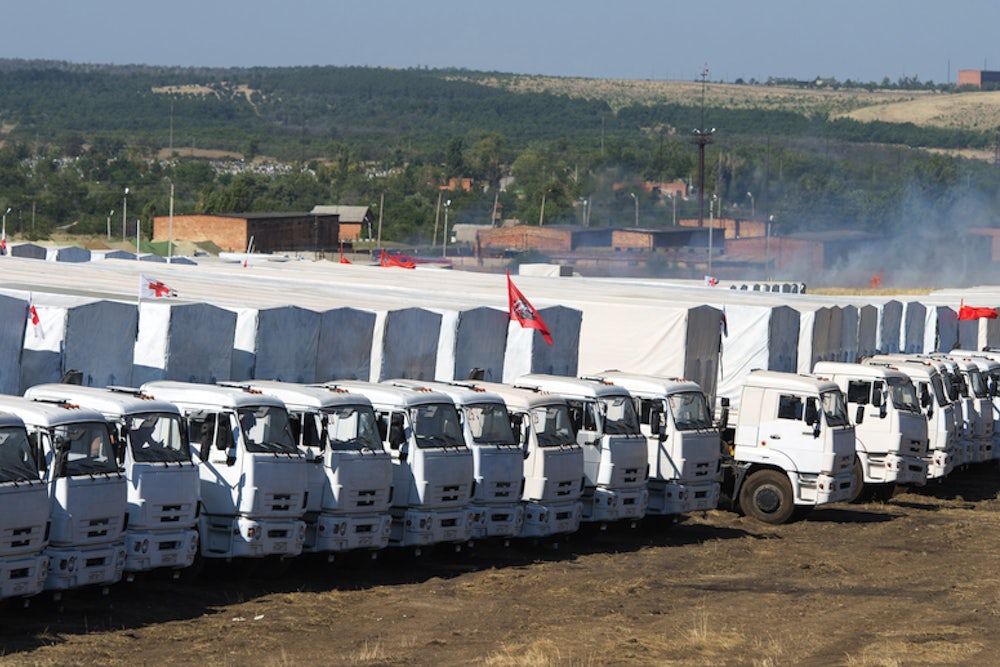 Russia’s humanitarian aid convoy is no Trojan Horse, but that doesn’t matter—what’s inside the trucks is less important than what's behind them. The convoy is currently parked at the Russia-Ukraine border, waiting for directions from the Kremlin about what’s next. On Thursday, some of the drivers let journalists take a look at the cargo. There wasn’t much to look at: The trucks are indeed carrying humanitarian aid, but they’re “almost empty,” BBC’s Steve Rosenberg reports.