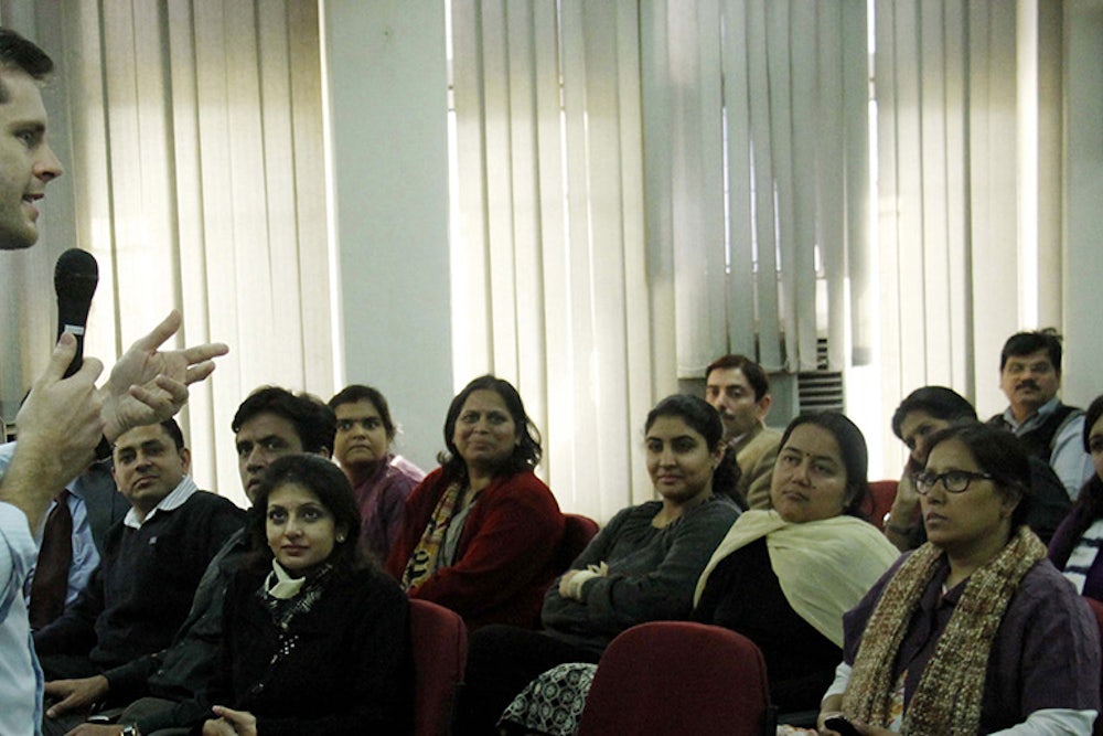 On a Saturday afternoon at WDS, Smeeta Hirani, a petite woman wearing a bright fuchsia sundress and nose ring, takes copious notes at a meet-up led by Guillebeau’s book agent, David Fugate. Hirani is a fortysomething ex-Microsoft manager from Seattle who quit corporate life to become a yoga teacher and writer. She was exhausted by corporate hours and equipped with the savings to leave it behind. She now wants to write a book about how she quit her job, escaped an arranged marriage, and began to live her life on her own terms, she says. A friend told her about Guillebeau and WDS and its mission clicked with her. “I want to be a spokesperson for people who don’t fit in a box, to help them find their own truths,” she tells me.