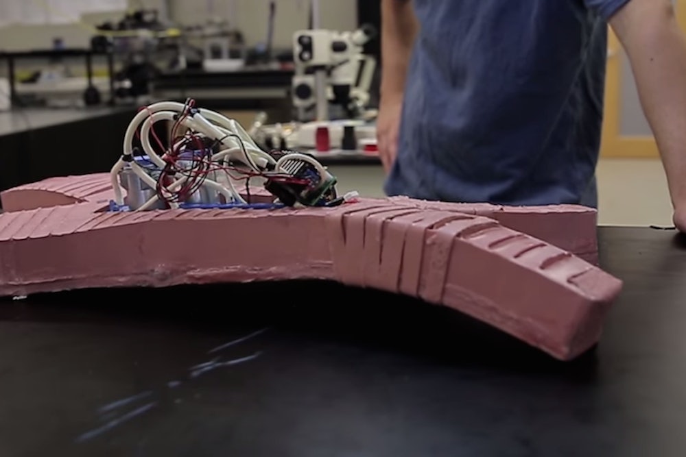 So why make a soft robot? Tolley pointed out that they’re “inherently less dangerous” than hard ones. “If you were to go into a factory setting where they use robot arms to weld car parts, just the large, rigid arms flying around very quickly can be very dangerous,” he said. “A soft robot like this one is much less likely to cause harm.”