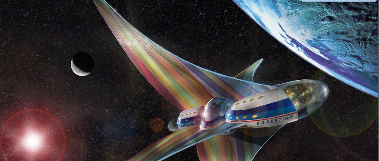 Most of the ships that will carry them away from Earth still exist as prototypes or artist renderings.