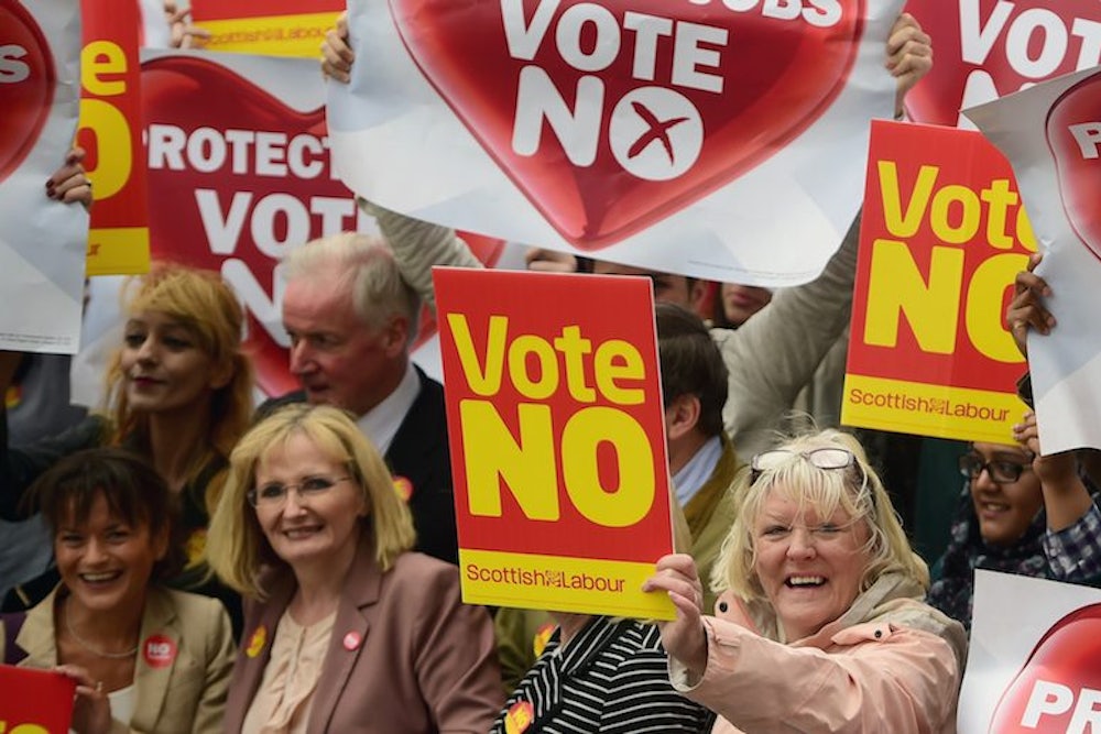 “My view is that the Union can be saved once,” Adam Tomkins, John Millar Professor of Public Law at the University of Glasgow and an adviser to the No campaign, told me. “If No win narrowly, as they did in Quebec [by 51 percent to 49 percent in the second of two independence referendums] in 1995, the British state must reinvigorate itself—and that means more devolution. If circumstances require us to have a second referendum in a parliament or two’s time, Yes will win by a country mile.”