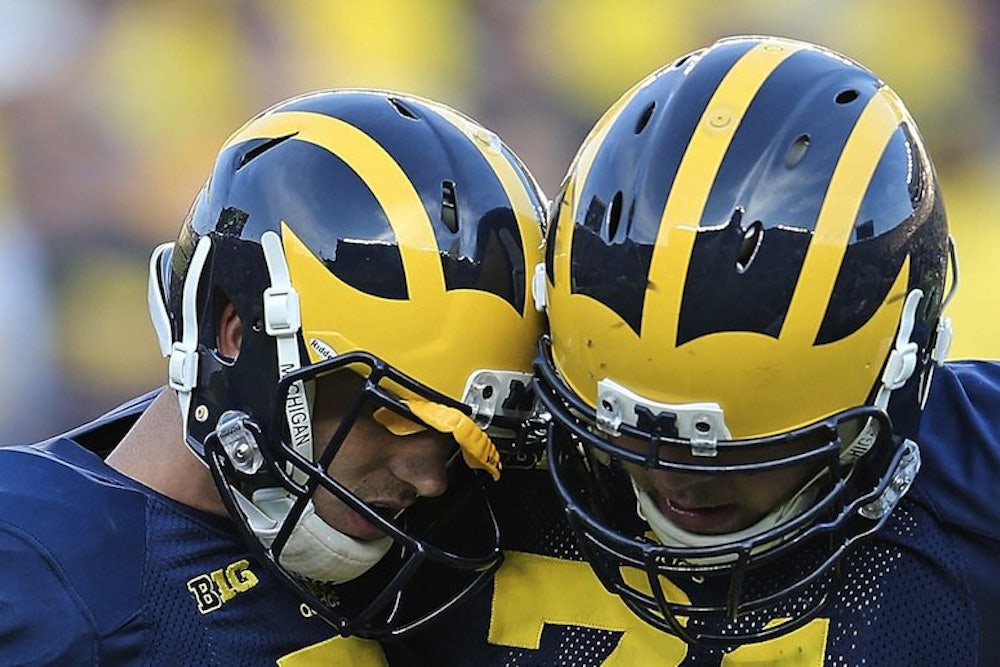 Afterwards, Coach Brady Hoke told reporters he had assumed that Morris was wobbly because of a leg injury the quarterback suffered earlier in the game. Medical staff had cleared Morris to keep playing and the quarterback had waved away sideline help. Hoke said he wasn’t even sure if Morris had been concussed. Then, in the middle of the night, Athletic Director Dave Brandon released a statement confirming that, yes, Morris suffered a concussion.