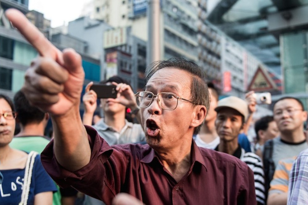 The best approach is to remain skeptical, wrote journalist Au Ka Lun in a recent article that got re-posted by protesters. Readers should ask themselves three questions, he wrote: “Who said it? Is it real? Are there other possible explanations?” Albert Lee, 31, was putting this strategy of radical skepticism to work in Mong Kok Sunday morning. “I don’t know,” he said, raising his hands and shrugging his shoulders, when I asked him if he thought a particular anti-protester was getting paid. “No evidence. No evidence. I don’t know.”