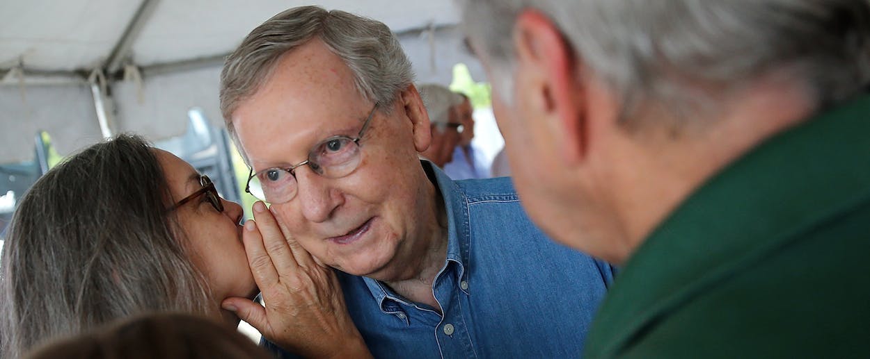 McConnell knows all of this. He talks around it all in such easily discredited ways that it’s remarkable he’s gotten away with it since May. Even if he ultimately wins, it’d be a real waste if he gets through the entire campaign without being asked to reconcile the contradictions even once.