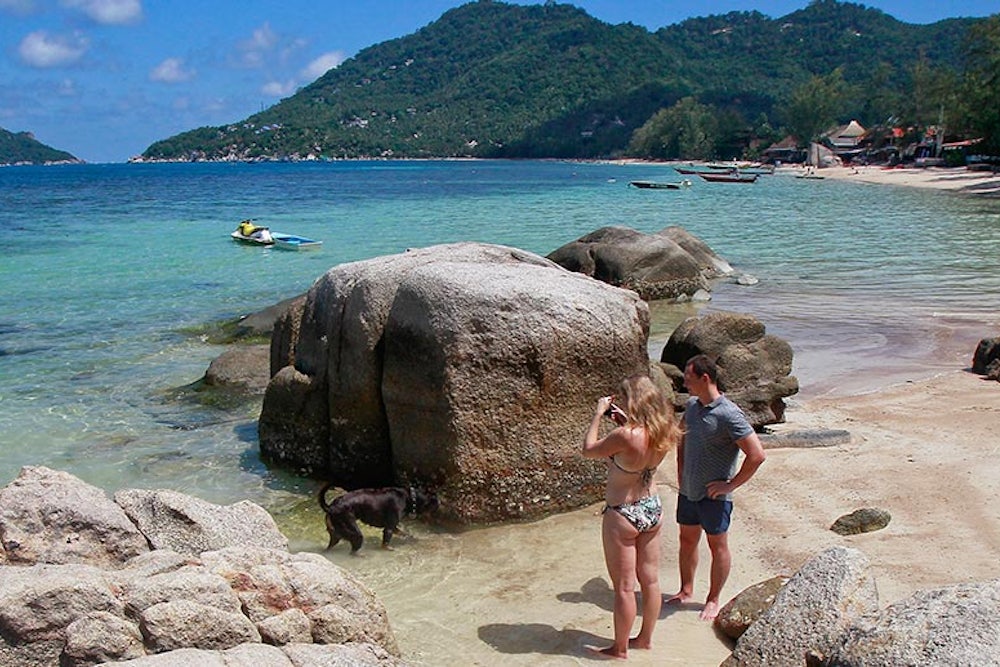 The disingenuity may be wearing thin, since this, as many of you will have realized from the outset, is the beach in Thailand where the bodies of two murdered British tourists were recently discovered. This knowledge changes everything—including our perception of the dog, who now seems to have sensed or scented something untoward. In its modest way, the woman’s picture recalls Joel Sternfeld’s photographs of parking lots or street corners in On This Site: unremarkable spots transformed into photographic memorials by captions explaining that these are places where a rape, murder, or abduction took place. The couple in the photograph will offer a similar explanatory caption when they show the picture to friends or post it on Tumblr or whatever. Still, their picture will not be as interesting as this one: a photograph showing the transformation in the process of being made. It is the act—her act—of taking the picture that invests the site with meaning. Her picture might be pointless, the act of taking it is not. Quite possibly she is taking it not to make a visual record, but to offer some kind of tribute, to pay their respects in the way that, had any been available, they might have left a bunch of flowers. This is often the case: People don’t take pictures in order to have a picture; they take pictures because that is what you do. Perhaps it’s better put interrogatively: What else can you do? The man provides the answer: You just stand there.