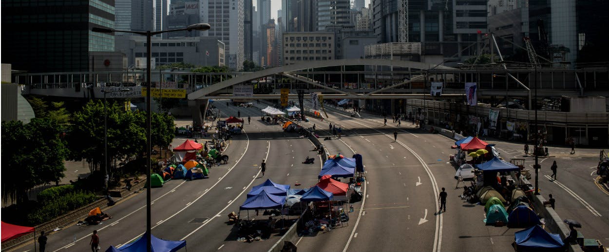 After more than a week spent barricading the streets of downtown Hong Kong, students came to an agreement with government leaders on Tuesday that they would meet to discuss possible reforms to the electoral system. But that meeting doesn’t happen till Friday. Until then, protesters are hanging in a limbo state of sort-of-protest, conditional on the outcome of Friday’s meeting. Many have gone back to school or to work. The Admiralty crowd, once in the thousands, by Wednesday had dwindled to a couple hundred.
