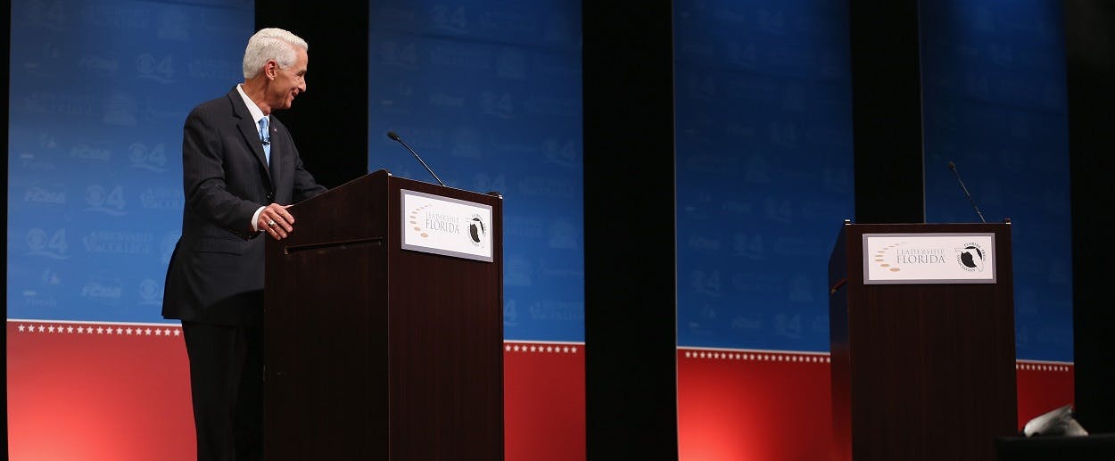 In Wednesday night’s debate at Broward College between Florida Governor Rick Scott and former Florida Governor Charlie Crist, things started very weird. Crist had placed a small fan under the podium, apparently a violation of the debate rules agreed upon by the campaigns. Scott refused to come onto the stage for around six minutes, leaving Crist standing alone. Fangate, as it became known, was the focal point of almost every national news story about the debate.