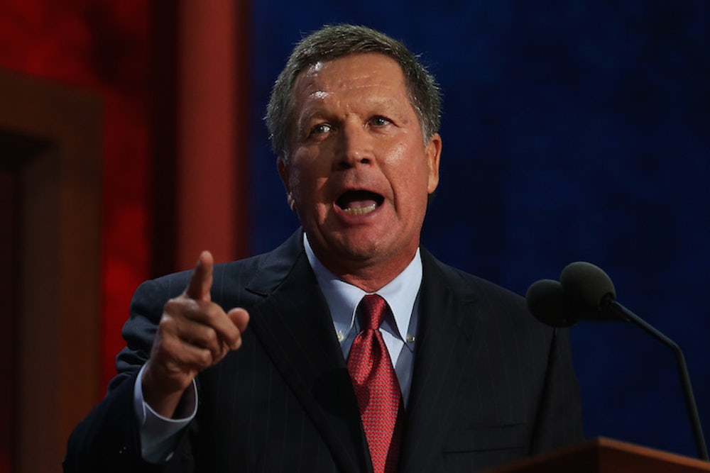 Kasich later clarified to Politico that he was speaking not about the Affordable Care Act as a whole, which he continues to oppose, but simply about the law's expansion of Medicaid. And, to be clear, it wouldn't be the first time Kasich has done that. Kasich fought hard to have his state participate in the Medicaid expansion—eventually circumventing the state legislature to get it done. But in the same interview, when asked about repeal of the law, Kasich said flatly "that's not gonna happen."