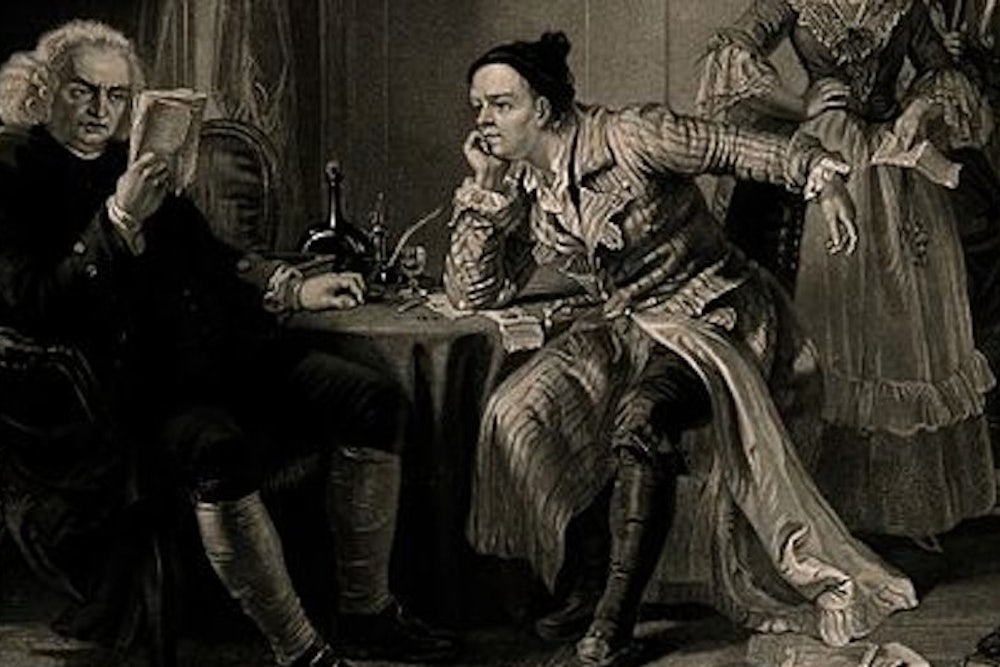 Boswell’s career was completely dominated by his innate characteristics. Where they came from it is impossible to guess. He was the strangest sport: the descendent of Scotch barons and country gentlemen, the son of a sharp Lowland lawyer, was an artist, a spendthrift, a buffoon, with a passion for literature, and without any dignity whatever. So he was born, and so he remained; life taught him nothing—he had nothing to learn; his course was marked out immutably from the beginning. At the age of twenty-three he discovered Dr. Johnson. A year later he was writing to him, at Wittenberg, “from the tomb of Melancthon”; “My paper rests upon the gravestone of that great and good man…. At this tomb, then, my ever dear and respected friend! I vow to thee an eternal attachment.” The rest of Boswell’s existence was the history of that vow’s accomplishment. But his connection with Dr. Johnson was itself only the crowning instance of an overwhelming predisposition, which showed itself in a multitude of varied forms. There were other great men, for instance—there was Mr. Wilkes, and General Paoli, and Sir David Dalrymple. One of Professor Tinker’s most delightful discovers is a series of letters from the youthful Boswell to Jean-Jacques Rousseau, in which the writer’s most persistent qualities—his literary skill, his psychological perspicacity, his passion for personalities, and his amazing aptitude for self-revelation—are exquisitely displayed. “Dites-moi,” he asked the misanthropic sentimentalist, “ne ferai-je bien de m’appliquer véritablement à la musique, jusque à un certain point? Dites-moi quel doit être mon instrument. C’est tard je l’avoue. Mais n’aurai-je le plaisir de faire un progrès continuel, et ne serai-je pas capable d’adoucir ma vieillesse par les sons de ma lyre?”1 Rousseau was completely melted. The elder Pitt, however, was made of sterner stuff. When Boswell appeared before him in the costume of a Corsican chieftain, “Lord Chatham,” we are told, “smiled, but received him very graciously in his Pompous manner”—and there the acquaintance ended; in spite of Boswell’s modest suggestion that the Prime Minister should honor me now and then with a letter…. To correspond with a Paoli and with Chatham is enough to keep a young man ever ardent in the pursuit of virtuous fame.”