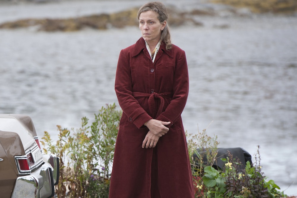 In fact, we first meet Olive as she lays a blanket on the ground in the woods, sets down an envelope addressed “To whom it may concern,” and raises a revolver to her head. Though punctuated by dry humor and warm performances, “Olive Kitteridge” never lets go of that early bleakness; there are two deaths in the first hour alone. Strout’s book was a novel woven out of loosely connected stories about Olive and her family and friends, with Olive sometimes hovering on the edges of her neighbors' stories. HBO’s adaptation—directed by Lisa Cholodenko (The Kids Are All Right), who worked with McDormand in 2003’s Laurel Canyon—is more straightforwardly chronological and more tightly focused on Olive’s experience in a town with depression in its fabric. At times, it threatens to become claustrophobic, even as it is brightened by the performances of Bill Jenkins, Zoe Kazan, and Ann Dowd. But at its heart is McDormand, giving a performance remarkably unfussy and unvain.