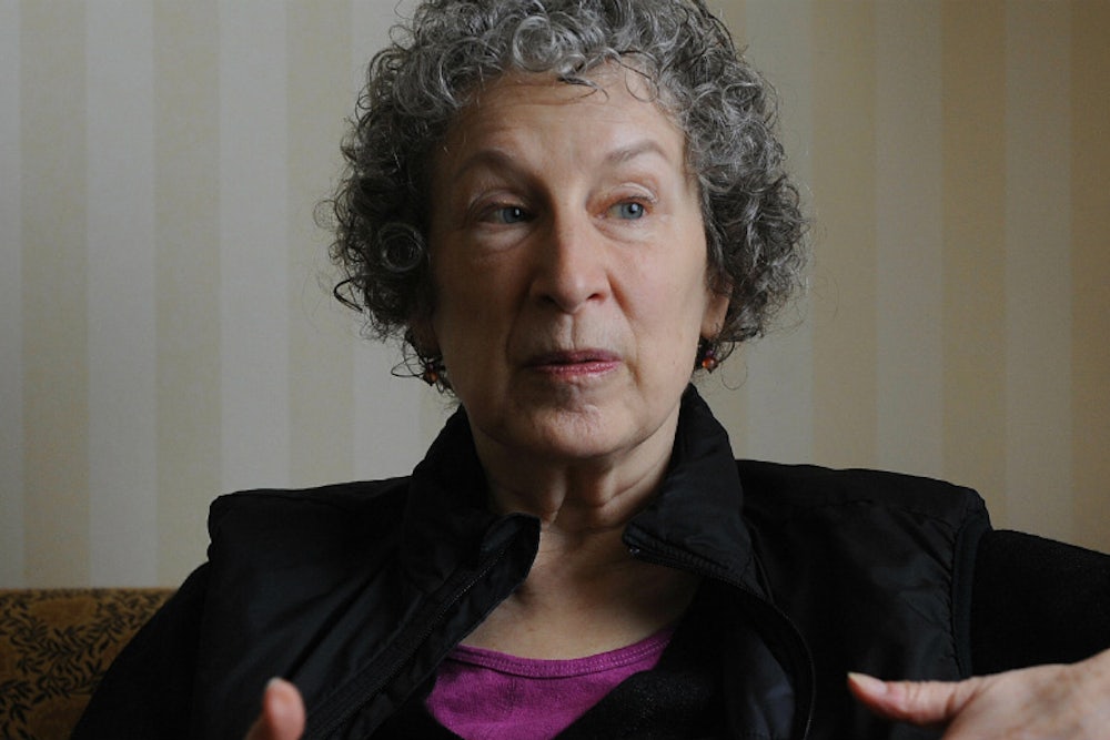 An autumn morning in Ilkley, North Yorkshire. Summer has finally slunk away, and not long after breakfast I find myself tramping, in the chill grey air, down the hill to the train station with Margaret Atwood. She is dressed in sensible travelling black, but for a colorful scarf and pink-and-purple sneakers. Last night she filled a hall of more than 500 people at the Ilkley Literature Festival, nearly all of whom, it seemed, then stood in line to have their books signed. Some of them had just bought a copy of Stone Mattress, her new story collection—but most were bringing not only her new book but stacks of well-worn and clearly beloved paperbacks, from The Handmaid’s Taleto Cat’s Eye, from her first novel, The Edible Woman, to Oryx and Crake, The Year of the Flood and MaddAddam. The final three are a remarkable trilogy that began to appear a decade ago; a vivid, frightening, and fully realized world that is all too believably a consequence of our present existence.