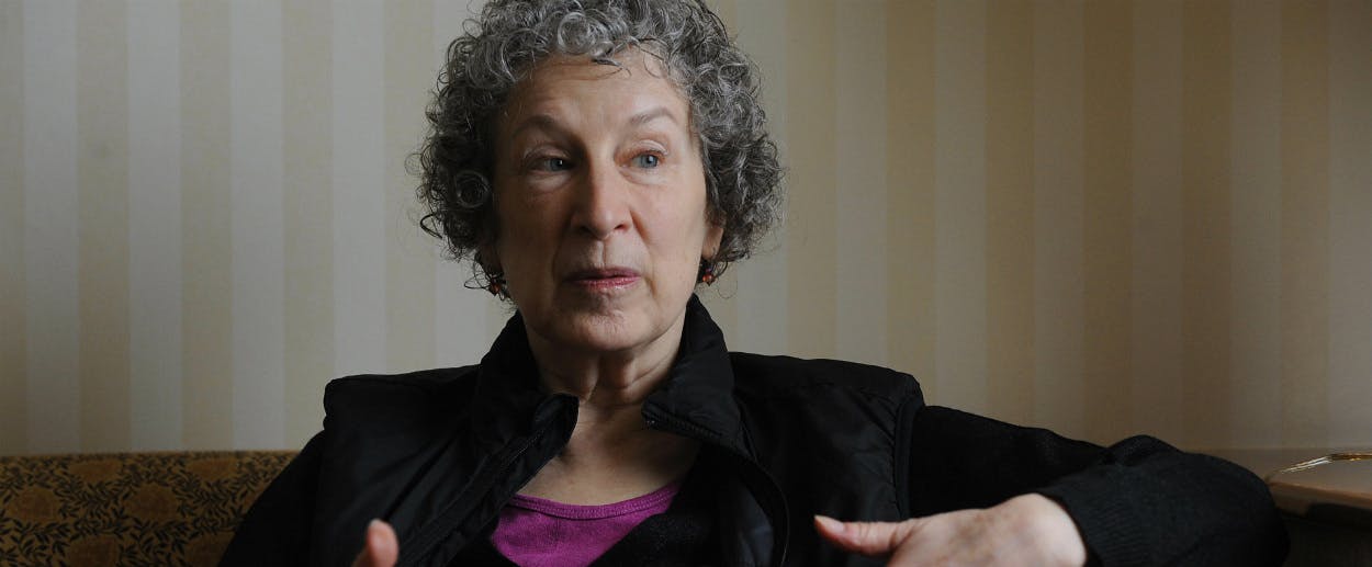 An autumn morning in Ilkley, North Yorkshire. Summer has finally slunk away, and not long after breakfast I find myself tramping, in the chill grey air, down the hill to the train station with Margaret Atwood. She is dressed in sensible travelling black, but for a colorful scarf and pink-and-purple sneakers. Last night she filled a hall of more than 500 people at the Ilkley Literature Festival, nearly all of whom, it seemed, then stood in line to have their books signed. Some of them had just bought a copy of Stone Mattress, her new story collection—but most were bringing not only her new book but stacks of well-worn and clearly beloved paperbacks, from The Handmaid’s Taleto Cat’s Eye, from her first novel, The Edible Woman, to Oryx and Crake, The Year of the Flood and MaddAddam. The final three are a remarkable trilogy that began to appear a decade ago; a vivid, frightening, and fully realized world that is all too believably a consequence of our present existence.
