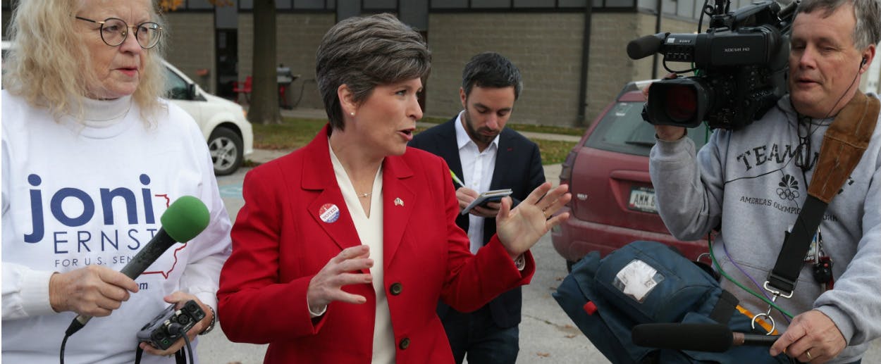 By this time tomorrow, the 2014 midterms will be over, but for one or two runoff elections in Louisiana and/or Georgia and perhaps some final ballot-counting in the Aleutian Islands, and we’ll be able to start focusing on what really matters: handicapping the 2016 races for the White House and Congress. But if nothing else remains from this uninspiring and forgettable campaign season, I suspect we will come to see one particular 2014 contest as historically significant. The Iowa Senate race between Congressman Bruce Braley, a Democrat, and state Senator Joni Ernst, a Republican, may stand as a case study of what happens to campaign politics in a world where traditional journalism is hanging on by a thread.