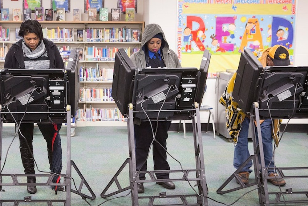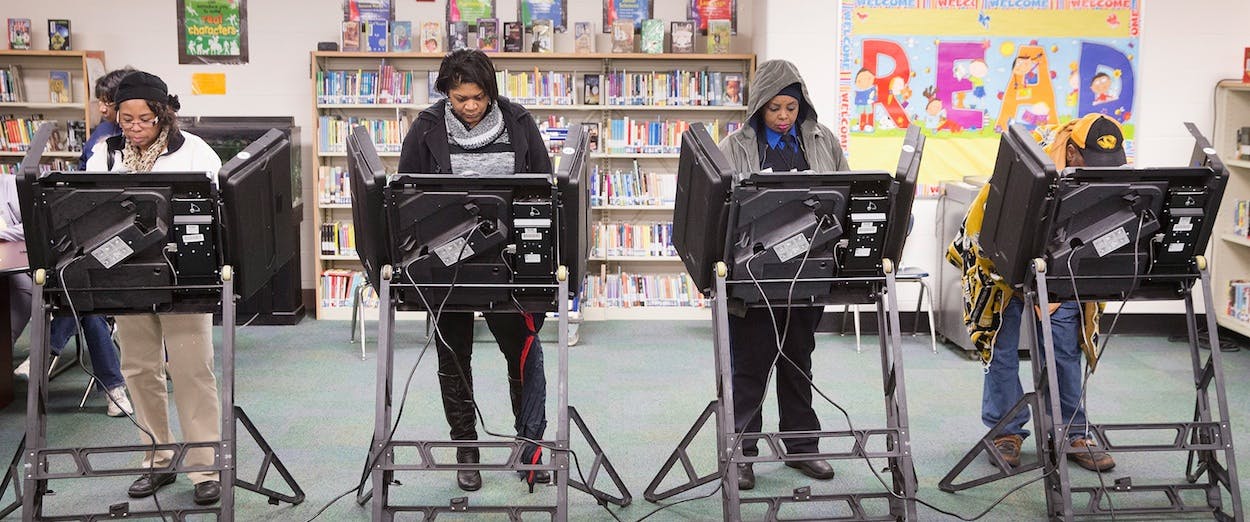— deray mckesson (@deray) November 5, 2014Granted, these are isolated reports; we don't know if they're indicative of wider problems with Ferguson's polls. But given that voter ID rules are generally a Republican tactic to suppress black turnout, and Ferguson is 67 percent African-American, the last thing the St. Louis suburb needs is another trigger for racial tension.