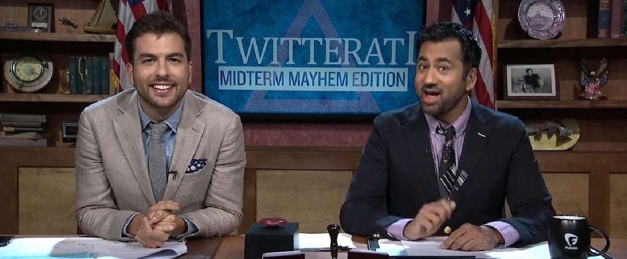 With only 20 million cable subscribers, Fusion has gotten more attention for its hiring spree of of big-name online journalists—including Felix Salmon, Anna Holmes, Margarita Noriega, Alexis Madrigal, and Kevin Roose—than for anything it airs. Launched last October as a collaboration between ABC and Univision, the network has high ambitions to be the go-to news channel for a multi-cultural, multi-ethnic generation of viewers. (It was originally conceived as a network for young, English speaking Latinos, but later broadened its focus—executives last year described it as “winking at Hispanic.”) “In 2016, no one is going to be able to make it to the White House without Fusion and without Univision,” its star anchor Jorge Ramos has said. In the meantime, they have Kal Penn, star of Harold and Kumar Go to White Castle.