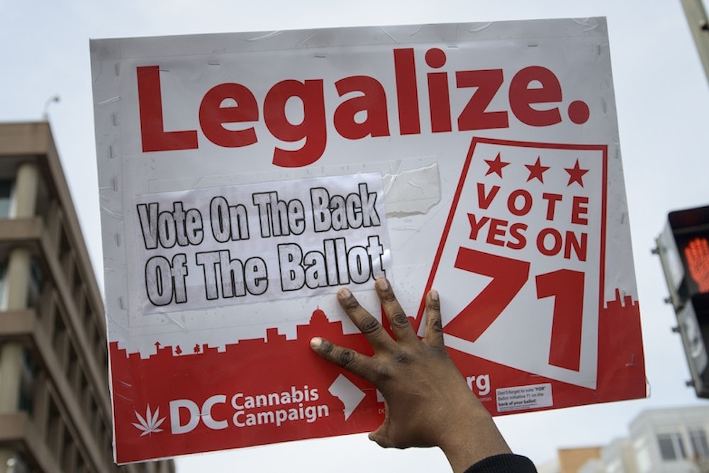 The ballot measure to legalize marijuana in the District of Columbia handily passed yesterday. D.C. residents over 21 will soon be able to possess, grow, and share pot (as long as Congress approves it). Many D.C. residents, though, still won't be allowed to light up. Federal employees, who make up almost 30 percent of the city’s workforce, are banned from using the drug, said Department of Justice spokesperson Patrick Rodenbush.