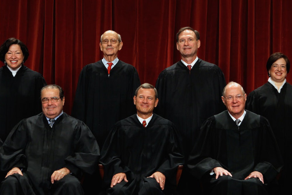 You can read the whole brief below. Conservatives are brimming with excitement over the Court's decision to hear the challenge. Should the five conservatives rule that the text of the law doesn’t provide for federal subsidies in states that didn’t set up their own exchanges, they’ll place the onus on Congress or state governments to address the consequences for constituents who lose their benefits. The contested text could be fixed with a comically simple technical corrections bill, which Democrats would happily support. If Republicans were to sit on their hands, or use the ensuing chaos as leverage to extract unrelated concessions, it will cost people their lives. That is a cardinal reality facing justices, and the people soliciting their conservative activism.