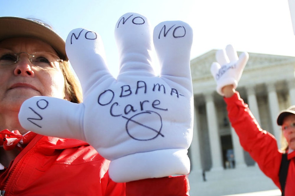 The plaintiffs in this case, who are actually the recipients of the contested subsidies in healthcare.gov states, probably did not even see themselves as “injured” until they were tracked down by an ingenious conservative search for a handful of people in a narrow income bracket in a select few states. In order to sue, the ACA’s opponents needed to find someone who could claim “injury” by the IRS giving out extra money. That's not so simple. But by hunting down a few willing plaintiffs whose IRS credit bumped them up an income bracket and made them liable for penalties under the individual mandate, the ACA challengers found an Archimedes lever with which dismantle Obamacare. That’s not politics as usual, or even political lawsuits as usual—it’s scorched-earth opportunism. These cynical political operatives, not the textualist judges who feel compelled to go along with them, should be the targets of liberal fury.