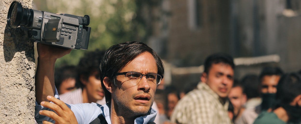 “The Daily Show” plays a small role in the story of Behari, played by a slightly geeky (and very Mexican) Gael Garcia Bernal. In Tehran to report on the 2009 elections for Newsweek, Behari sits for an interview with “Daily Show” correspondent Jason Jones: Jones pretending to be an American spy, Behari gamely playing along. The regime didn’t quite get the joke, and it’s just one of the reasons Behari is arrested a few days later. While the movie is capably directed, Stewart makes some muddled visual choices, with fussy flairs that the story doesn’t need. The importance of social media to the Green Revolution is shown with shiny, floating hashtags that look like they were imported from some Verizon commercial. Scenes of eager young revolutionaries mixed in with real footage from 2009 seem perfunctory.