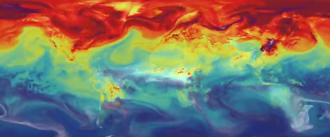 In a striking new video, the NASA Goddard Space Flight Center shows exactly how carbon pollution travels across the planet over the course of a year, moving away from the largest polluters and across the atmosphere. This computer model also shows how carbon dioxide levels can fluctuate throughout the year, and how its path is affected by things like wind, weather, and geography.