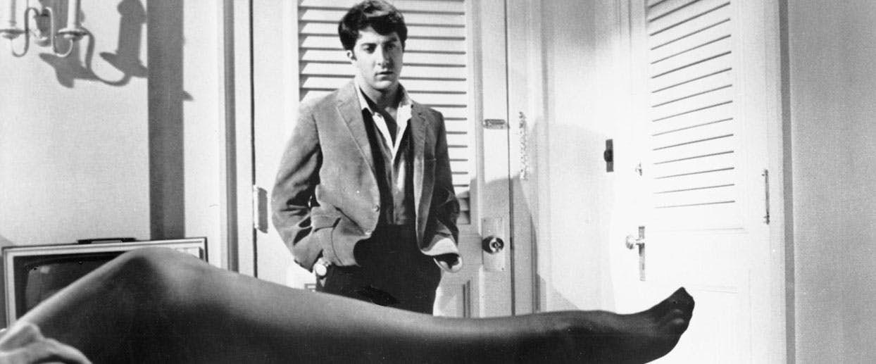 Ben is a bright college graduate who returns to his wealthy parents’ Hollywood home and flops—on his bed, on the rubber raft in the pool. Politely and dispassionately, he declines the options thrust at him by barbecue-pit society. The bored wife of his father’s law partner seduces him. Ben is increasingly uncomfortable in the continuing affair, for moral reasons of an unpuritanical kind. (The bedroom scene in which Ben tries to get her to talk to him is a jewel.) The woman’s daughter comes home from college, and against the mother’s wishes, Ben takes her out. He falls in love with the girl—which is predictable but entirely credible. He is blackmailed into telling her about his affair with her mother and, in revulsion, the girl flees—back to Berkeley. Ben follows, hangs about the campus, almost gets her to marry him, loses her (through her father’s interference), pursues her, and finally gets here. For once, a happy ending makes us feel happy.