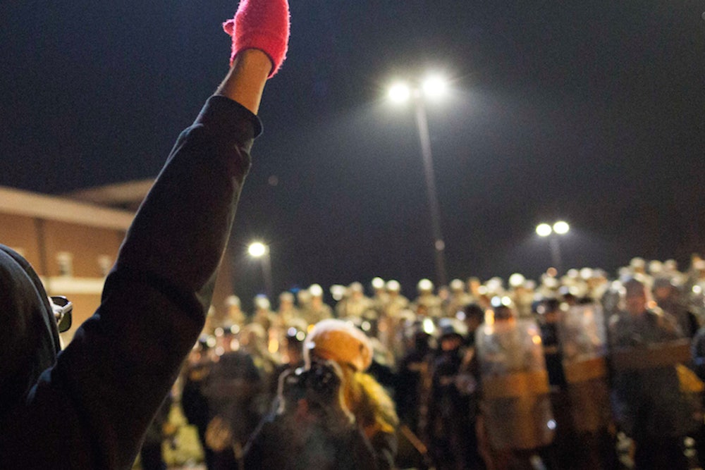 Unrest in Ferguson continued for a second night after a grand jury refused to indict Darren Wilson, the police office who shot Michael Brown. In response to Monday’s events, Missouri Governor Jay Nixon increased the National Guard troops from 700 to 2,200. And while the Associated Press report said the clashes were more subdued yesterday, arrests continued and a cop car was set on fire.