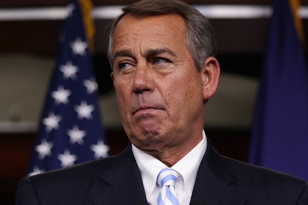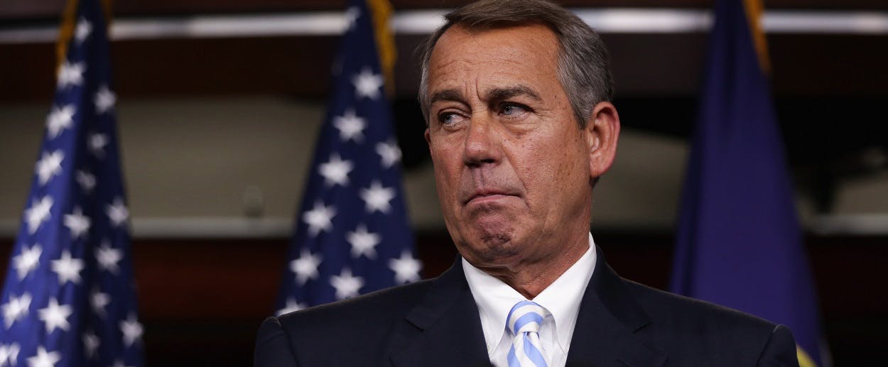 The House GOP is meeting today to decide on their legislative strategy. Conservatives are pushing GOP leaders to use the government funding process to block Obama’s executive action on immigration. But figuring out how to use the power of the purse to stymie the president has proven difficult. Conservatives originally pushed for an omnibus spending bill—a package of appropriations bills that can pass each chamber with one vote—that would prohibit the use of funds on Obama’s executive action. Senate Majority Leader Harry Reid and President Obama would never have accepted such a restriction. That would have set up a showdown and, most likely, some kind of government shutdown.