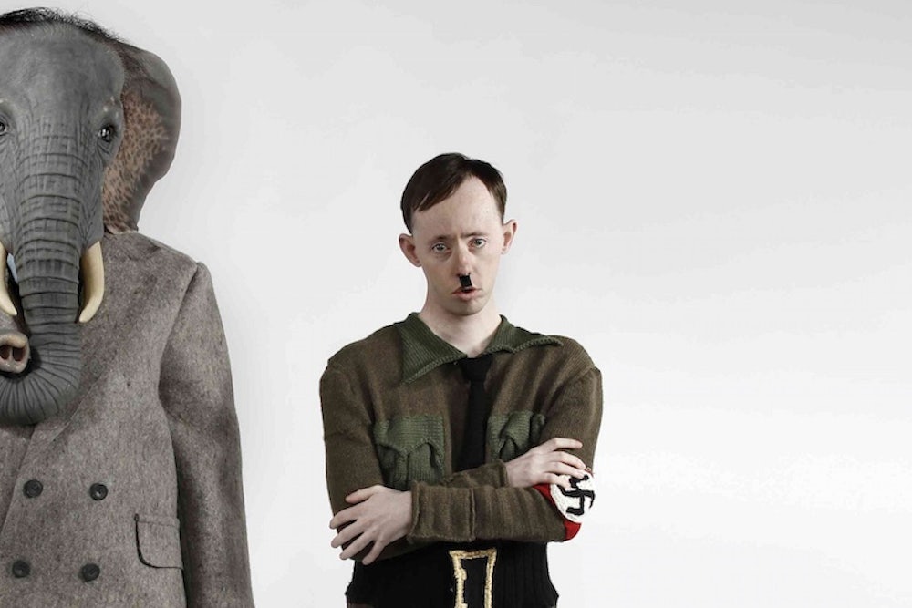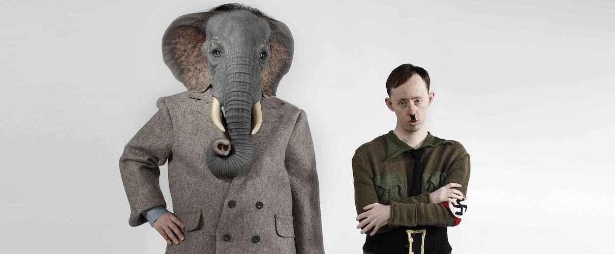 There is an uncomfortable moment in Ganesh Versus the Third Reich when the actors pause. The play, ostensibly about the Hindu deity travelling to Germany to reclaim the swastika, an ancient Sanskrit symbol, from the Nazis, comes to a halt as they remove their costumes—an elephant head and a SS armband—turn to face the audience, and ask: "Do we have the right to perform this?" None of the actors are Hindu or Jewish. Many have physical and mental disabilities but act the roles of Hitler and Josef Mengele, who tried to exterminate those similarly handicapped. Later, an actor drops out of character again, to accuse the crowd: "You've come to see some freak porn."