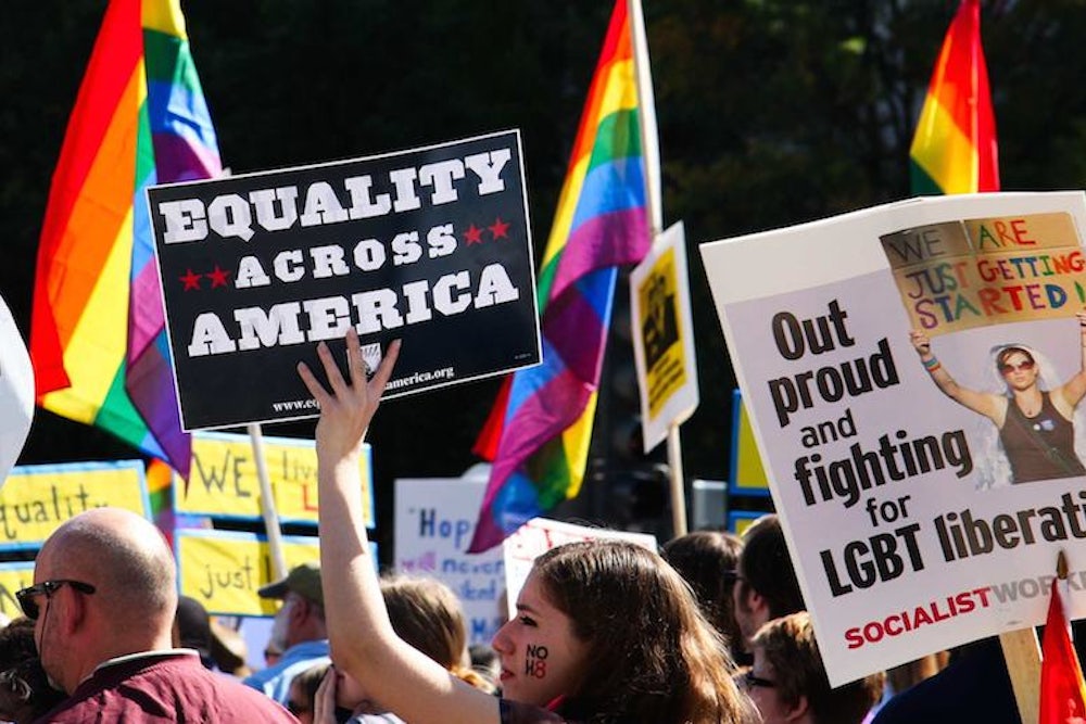 Now, these findings are complicated by the fact that a Supreme Court decision knocking down California’s ban on gay marriage occurred during the study—a decision that led to an across-the-board increase in support for gay marriage among study participants. But while that boost quickly faded among those who spoke with a straight canvasser, support for gay marriage “strengthened markedly” after the SCOTUS decision among those who had spoken with a gay canvasser. Those personal stories the gay canvassers told appear to have had a bigger impact than the stories straight canvassers told about friends or family members.