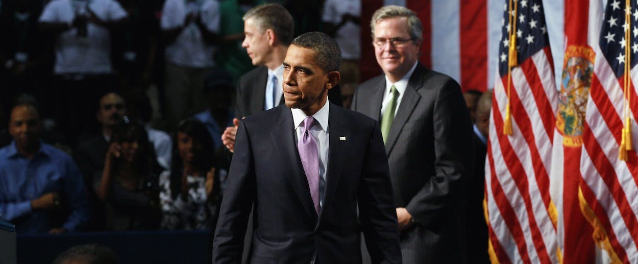 Bush could sit out this race to the right if he weren’t so closely aligned with the GOP's pro-reform wing. He wants Republicans to be measured, “rather than have their heads explode with the president’s executive actions.” But he can’t execute his plan—he can't demonstrate a commitment to principles, even when they conflict with the demands of the primary—in the environment Obama just created.