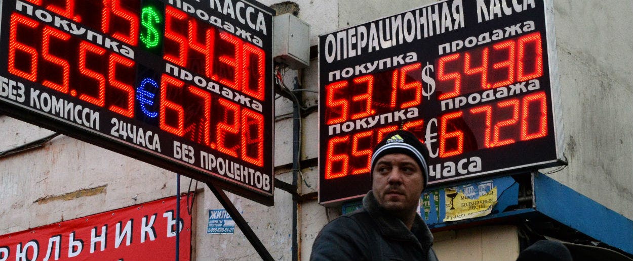 — Steven Pifer (@steven_pifer) December 16, 2014Rosneft, Russia’s state-owned oil company run by President Vladimir Putin’s longtime friend and former chief of staff Igor Sechin, appears to be behind the currency’s abrupt tumble. Facing $60 billion in debt while bruised by Western sanctions, and having been denied a massive government bailout, the company scrambled to find a way to make debt payments due this month, according to The New York Times. Rosneft issued 625 billion rubles in bonds and sold them to Russian banks, which then deposited them with the Central Bank. “The central bank started the printing press to help the Sechin-Putin business, and gave Rosneft 625 billion newly printed rubles. The money immediately appeared on the currency market, and the rate collapsed,” the liberal Russian politician Boris Y. Nemtsov told the Times. End result: Rosneft wins, Russians lose.