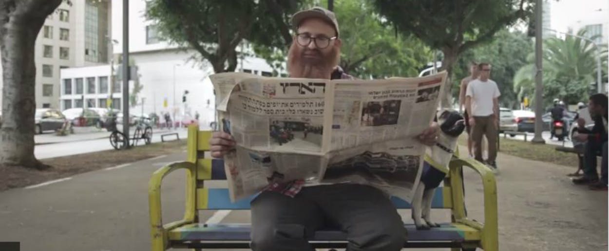 In Israel, Bennett has pitched himself as a “bro”—quite literally, as in the ad campaign “Bennett’s a Bro” and its attendant meme generator. In the new ad, however, Bennett himself plays the role of the hipster. The usually clean-cut Bennett is now dressed up in a long, fake beard, a flannel shirt and a pink watch, a baseball cap covering his bald pate, replacing his trademark small knit yarmulke. The ad shows Bennett in three scenarios in which he is wronged—a waitress spills coffee on him, an impatient driver rear-ends him, a woman grabs the Tel Aviv version of a Citibike out from under him—and yet in every scenario, Bennett’s hipster apologizes profusely. “I am sorry, I really am. I really apologize,” are the only sentences uttered throughout the ad, except for when the character, played with surprising aplomb by Bennett, opens his Haaretz newspaper to find a New York Times op-ed demanding that Israel apologize for the Flotilla debacle that left nine activists dead. “They’re right,” he says, nodding with Colbertian sagacity. The ad ends with Bennett, now beardless, asking people to register for his party. “Starting today, we stop apologizing,” he says.