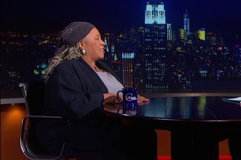 Last month, Colbert had Toni Morrison on to discuss racism, re-reading Beloved, and being pigeonholed as an “African-American writer.” His best question: “You didn’t write your first novel until you were 39. Is your entire literary career a midlife crisis?”