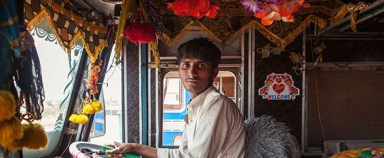 The drivers take great pride in their picturesque trucks. In a way, they are an extension of the personalities of their drivers—mostly young men who work long hours, moving all sorts of goods throughout the country. The brightly colored vehicles, adorned with everything from paintings of deities to pop culture references, offers a snapshot of an India caught between tradition and modernity.